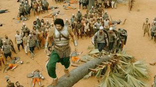 Scéna z indického filmu 'Baahubali 2', kde vojáci útočí na hrad velmi originální metodou.