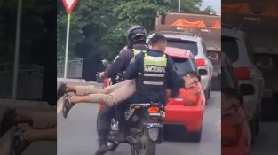 Když není k dispozici hlídkový vůz, policajti v Mexiku neváhají někoho zatknout a odvézt na jeho motorce.