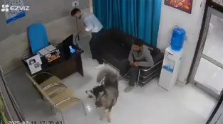 Husky najednou zaútočil na muže sedícího v čekárně veterináře. Muži se toho podařilo zbavit, Jednoduše to vyhodíte z čekárny.