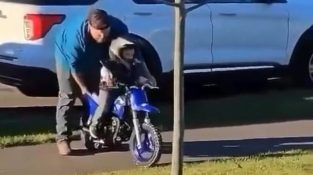 Otec udělal chybu, když svému malému synovi koupil mini benzinovou motorku. Dostal alespoň helmu.