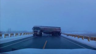 Řidič v Číně měl velmi děsivý zážitek, když k němu po zledovatělé silnici začal směřovat neovladatelný náklaďák.