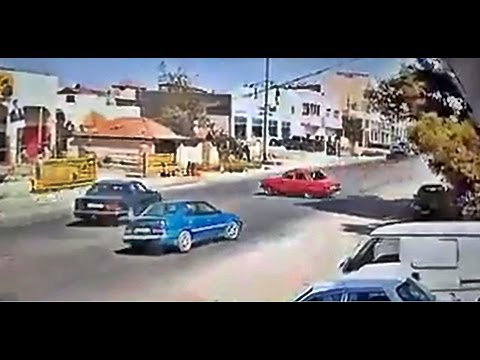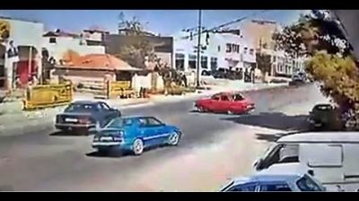 Den røde bil blev ramt fra sin højre hale. Ingen lyd tilgængelig.