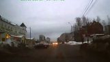 Den 11. september 2017 under orkanen Irma nær Griffin by i USA, et træ falder stejlt på gaden lige foran en bil. Driveren blev såret, men han led et mindre chok.