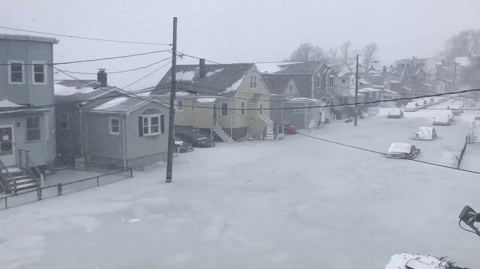 Hidtil uset lave temperaturer ramte østkysten af USA. En gade i Boston, hovedstaden i Massachusetts, bogstaveligt afkølet efter en snestorm også forårsaget store oversvømmelser. Biler er neddykket og fryses i is, mens beboerne er lukket i deres hjem. Spektakulære billeder som katastrofe film.