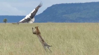 Under en safari i Tanzania, turister indspillet en spektakulær scene, hvor en stork dramatiske undslipper fra kløerne på en leopard. Leoparden gemmer sig i den tætte vegetation, synes pludselig forsøger at fange storken. Men sidstnævnte vil flyve hurtigt, tvinger Leoparden til at gøre et stort spring.