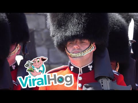 Dette er den krybe-værdige øjeblik et selskab af unge vagter bliver afsindigt ude af trit under Hosebåndsordenen ceremoni på Windsor Castle.