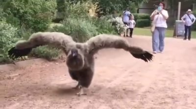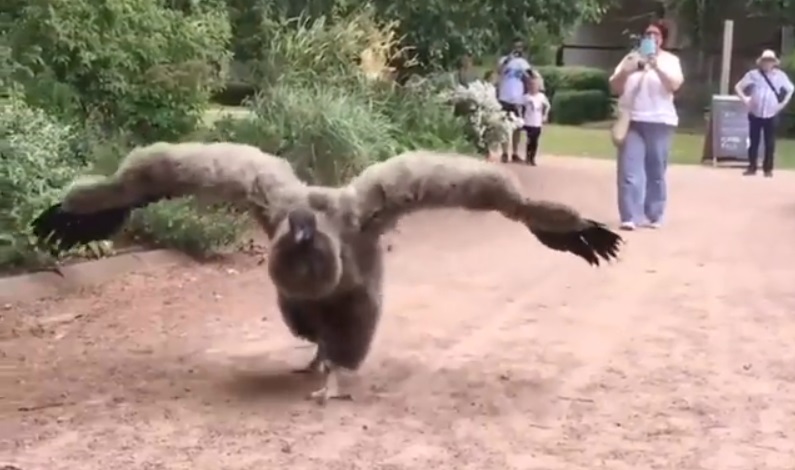En stor condor nærmer med spænding en mand, at spise lidt is.