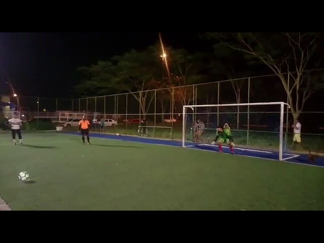 Under en amatør fodboldkamp i Brasilien, en hund kommer på det rigtige tidspunkt at pitche at afværge en straf.