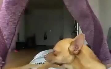 En pige gøer som en hund og skræmmer en fremmed forbi