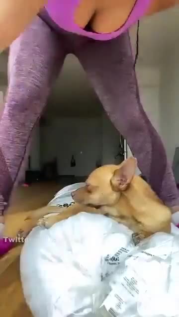 Hundens sjove ansigt, når den bliver knyttet af kat