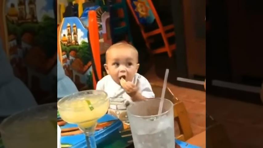 En baby synes at nyde den sure smag af citron, men har svært ved at spise.