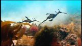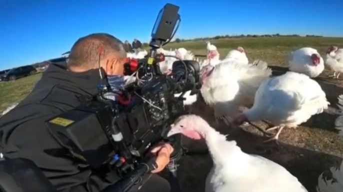 En kalkun bider en kameramands finger med sit næb, da han optog optagelser til en dokumentar. Scenen morer resten af kalkunerne...