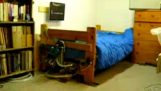 En mand, der arbejder for World of Illusion Museum i Los Angeles, Californien, bruger en innovativ teknik til at uddele foldere til forbipasserende på gaden. Sjovt og effektivt!