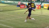 Tysk bordtennis spiller Timo Boll dueller med robotten KUKA KR AGILUS. De prøver deres hånd på at spille ...