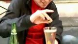 Eksperimenterede for at se, om en ølflaske kunne køres ind i en træplade