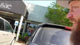 En bilist har en dårlig overraskelse ved at ville sætte gas i sin bil på en tankstation