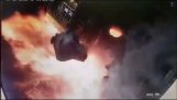 På en parkeringsplads, en parkeret motorcykel begynder at bevæge sig på egen hånd, indtil han vælter og falder på...