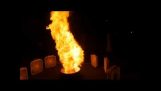 En mand kaster lidt benzin på en brand i sin have. Beholderen vil bryde i brand, og manden gik i panik,...