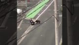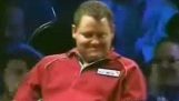 Komikeren Karl Porter genopfører en fodboldspillers målfest i slowmotion.