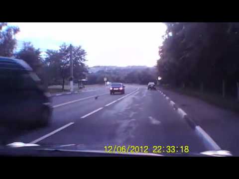 En motorcyklist i byen Pereslabl Zaleski af Rusland, kolliderer med passerende bil og lander på toppen af. Scenen så ud...