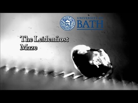 Når en overflade opvarmes over 200 ° C, og en dråbe vand kommer i kontakt med den, fordampning af lag i bunden af drop svævende, Mens damp lag mellem slipværktøjet og materialet, der fungerer som en termisk isolering, ikke at tillade drop at fordampe straks. To studerende fra University of Bath i m. Storbritannien, bygget en labyrint, der arbejder med dette fænomen og indlede dråber i bestemte retninger.