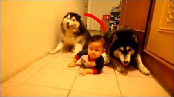 Meget funny scene hvor to hunde race baby malamoyt tilhængere i forsøget på at mpoysoylisei.