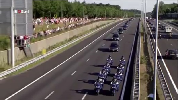 Onsdag 23. juli 2014, en uge efter krakket i flight MH17, de første hollandske døde hjemsendt til landet. 40 lig blev transporteret fra lufthavnen til en retsmedicinsk facilitet. Mange hollændere var samlet på motorvejen for at se optoget på 40 ligvogne, og indsende deres komplimenter. I alt 193 hollandske statsborgere blev dræbt i flyet. Identifikation af døde er stadig i gang.