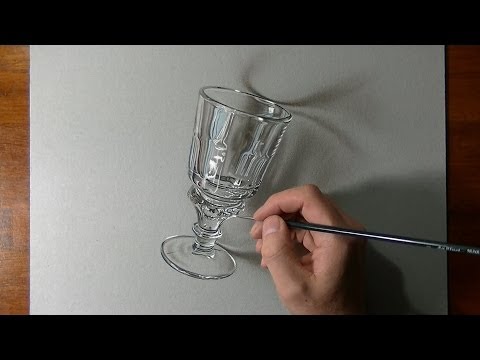 Sådan tegner du et Absinthe-glas med blandede medier – hyperrealistisk hastighedstegning, mixed media på gråt papir af Marcello Barenghi – Italian Art.