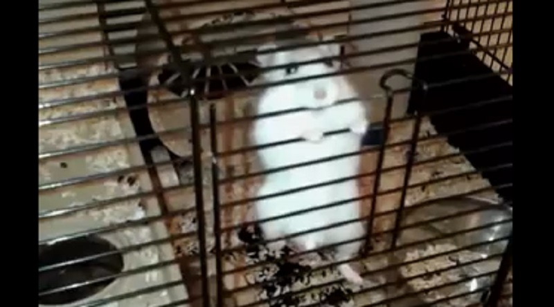 En hamster har opdaget denne sjove teknik til apodra fra sit bur.