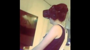 En kvinde er forvirret, som den forsøger for første gang den virtuelle virkelighed hjelm Oculus Rift.