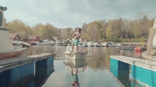 Én mand formår at forankre sin båd i havnen med meget komfort og slaphed. En kampagne for at forhindre problemerne i forbindelse med alkohol, fra en norsk organisation AV-OG-TIL.