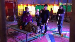 En tiger blev spændt fast til et bord så gæsterne et cirkus for at sidde op og trække billeder. Scenen fandt sted den 8. januar 2017 i et cirkus i Yiang City [...]