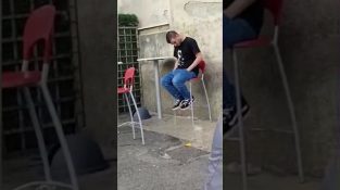 En ung mand der sover i en stol vil falde frem. At vågne vil være smertefuldt nok...