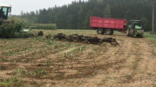 I Den Tjekkiske Republik, en flok af vildtlevende svin poppe pludselig fra kalampokies, nu, hvor landmændene gøre høsten med en stor maskine.