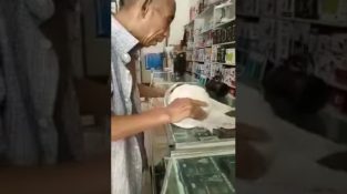 I Kina, en fattig gammel mand vil købe et ur i en butik. For at betale, vil åbne den store tegnebog: en stor kugle af tørklæder indeholdende 50 yuan (6,30 euro).