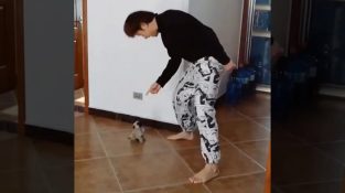 En lille hvalp globalt, Følg dansetrin af ejerens.