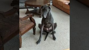 Teknikken med Gracie, en 3-årig Mastiff, skrabet anvendelse af to bageste ben samtidigt.