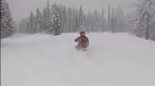 To venner tager på snescootertur, når man pludselig vil finde sig selv begravet i sneen.