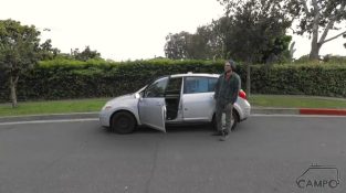 Joey (@joeywhitedesigns) forvandlet en 2007 Nissan Versa til en mini-campingvogn.