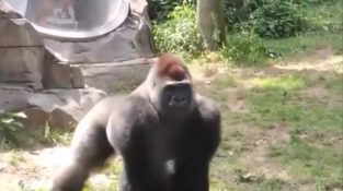 Gorillaen skræmmer de besøgende