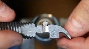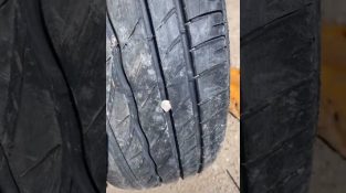 En mand viser os, hvordan vi omhyggeligt kan fjerne en sten, der sidder fast i rattet på vores bil, uden at beskadige dækket.