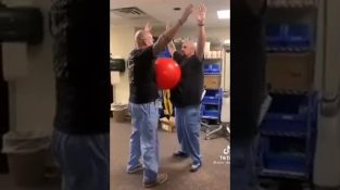 To mænd skrev en simpel, men meget imponerende koreografi med en bold.