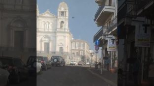 Byen Catania på Sicilien ligger i nærheden af Etna-bjerget. Udbruddet af vulkanen forårsagede en stenregn i byen.