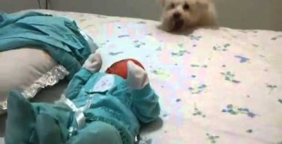 Αυτός ο σκύλος πραγματικά ανυπομονεί να γνωρίσει το νέο μέλος της οικογένειας