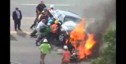 Ηρωικό πλήθος απεγκλωβίζει μοτοσικλετιστή