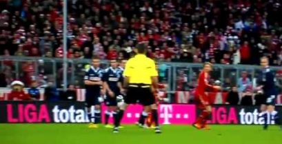 Στον ποδοσφαιρικό αγώνα μεταξύ της Bayern και της Κολωνίας, η μπάλα σκάει μετά από κτύπημα φάουλ από τον Daniel van Buyten.