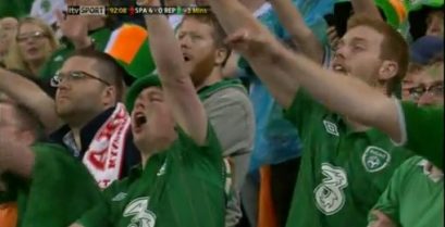 Οι Ιρλανδοί φίλαθλοι κατά την διάρκεια του αγώνα με την Ισπανία και ενώ η ομάδα τους χάνει με 4-0, τραγουδούν υπέροχα το παραδοσιακό τραγούδι “Fields of Athenry”