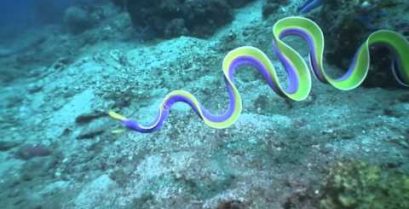 Ένα γαλάζιο χέλι “κορδέλα” στην θάλασσα του νησιού Sulawesi της Ινδονησίας
