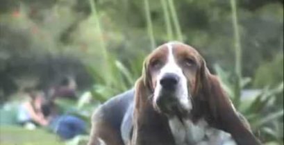 Ένας σκύλος ράτσας μπασέτ χάουντ τρέχει σε slow motion. Είναι πολύ αστείο το γεγονός ότι κάτω από όλο αυτό το δέρμα κρύβεται ένας άλλος σκύλος.