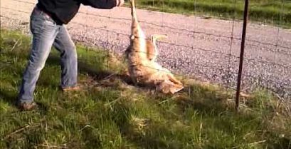 Ένας λύκος που μπλέχτηκε σε συρματόπλεγμα απελευθερώνεται από έναν ταξιδιώτη.